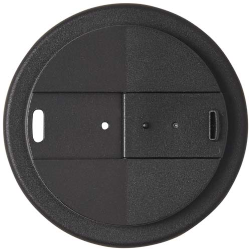 Bicchiere termico a doppia parete con coperchio ermetico twist e una decorazione a colori stampata su tutto il prodotto. Realizzato in materiale riciclato al 70% (bicchiere riciclato e interno nero), con un coperchio in plastica PP standard. Il bicchiere è completamente riciclabile, lavabile in lavastoviglie e adatto al forno a microonde. Capacità 350 ml e privo di BPA. Confezionato in un sacchetto idoneo al compostaggio domestico. Prodotto nel Regno Unito.