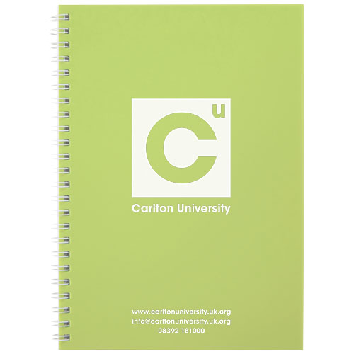 Blocco note a spirale Rothko di formato A5. Blocco note colorato e conveniente con copertina frontale in polipropilene. La versione standard include 50 fogli di carta bianca da 80 g/m2. Per alcuni colori è disponibile anche la versione da 100 fogli.