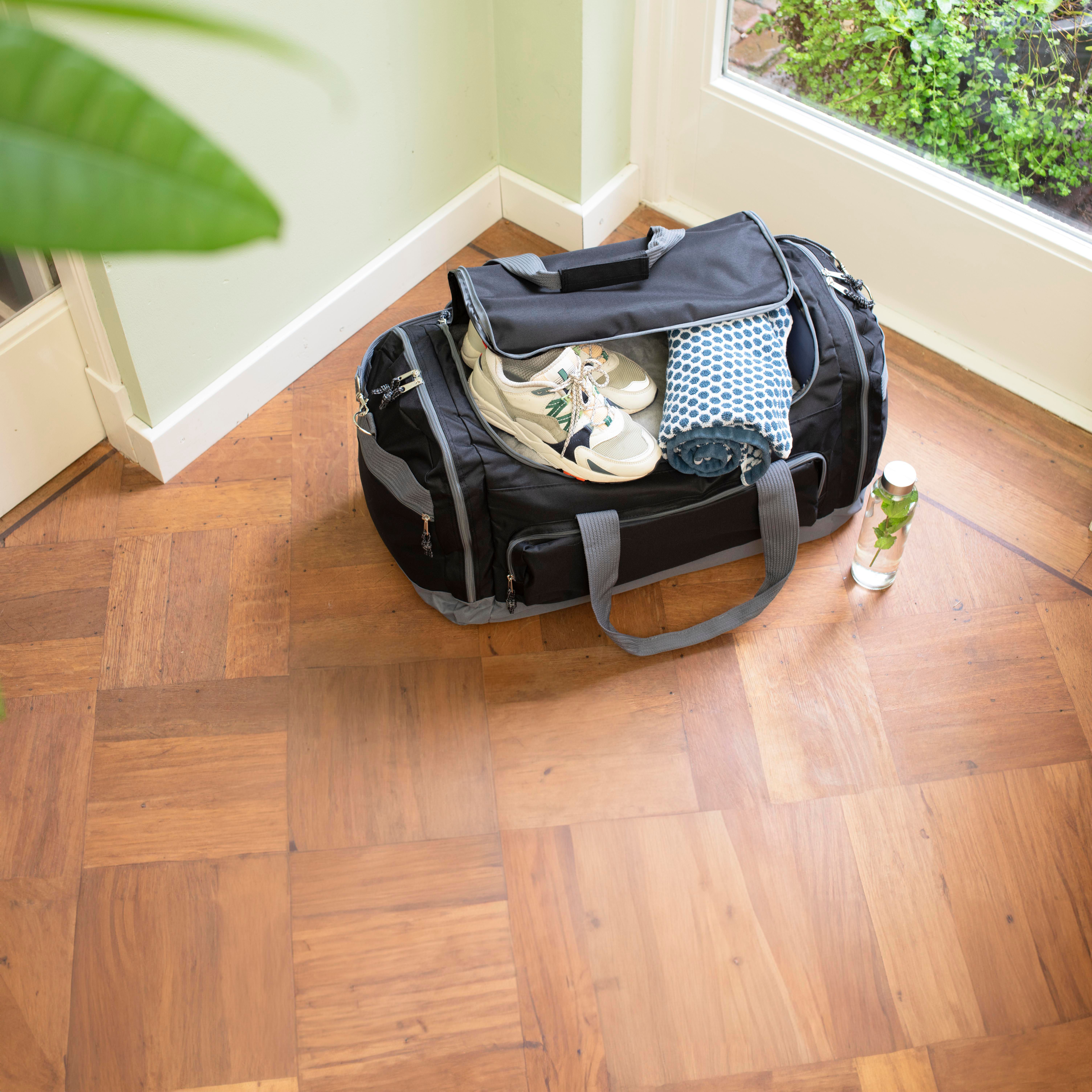 Borsone sportivo, vari scomparti, tracolla imbottita regolabile, in poliestere 600 D