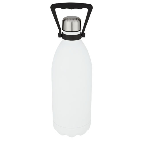 Borraccia di grandi dimensioni in acciaio inossidabile con isolamento sottovuoto dal design iconico. Presenta un comodo manico per il trasporto. Priva di BPA, testata e approvata ai sensi della normativa tedesca in materia di sicurezza alimentare (LFGB). Testata e approvata per il contenuto di ftalati secondo il regolamento REACH. La capacità è di 1,5 litro. È consigliato lavarla a mano. Fornita in una confezione regalo in cartone riciclato. Mantiene le bevande calde per 12 ore e fredde per 48 ore.