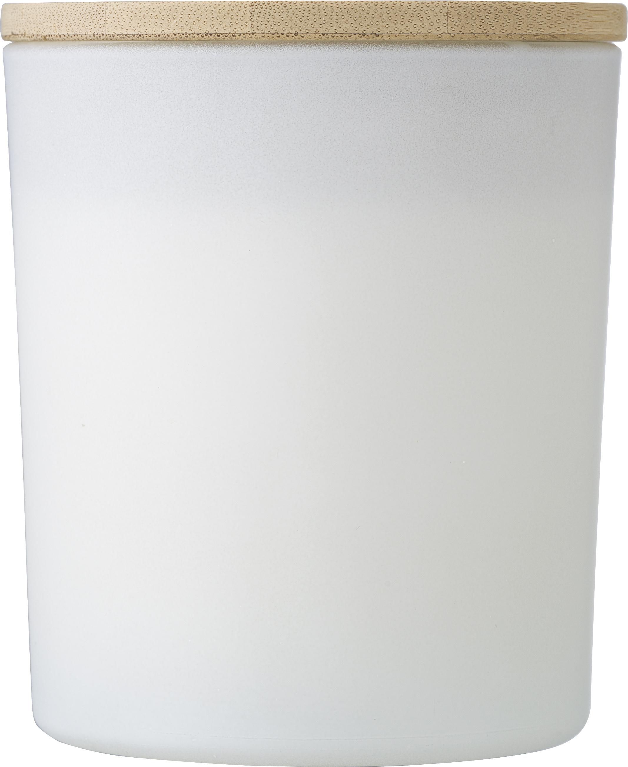 Candela in vetro con cera vegetale e coperchio in bambù, contiene principalmente cera di origine vegetale (cera di carnauba) e ha una durata di circa 46 ore. Quattro profumi a seconda del colore del vetro: cannella (rosso), vaniglia (bianco), legno di sandalo (nero) e gelsomino (verde), confezionata singolarmente in un tubo bianco