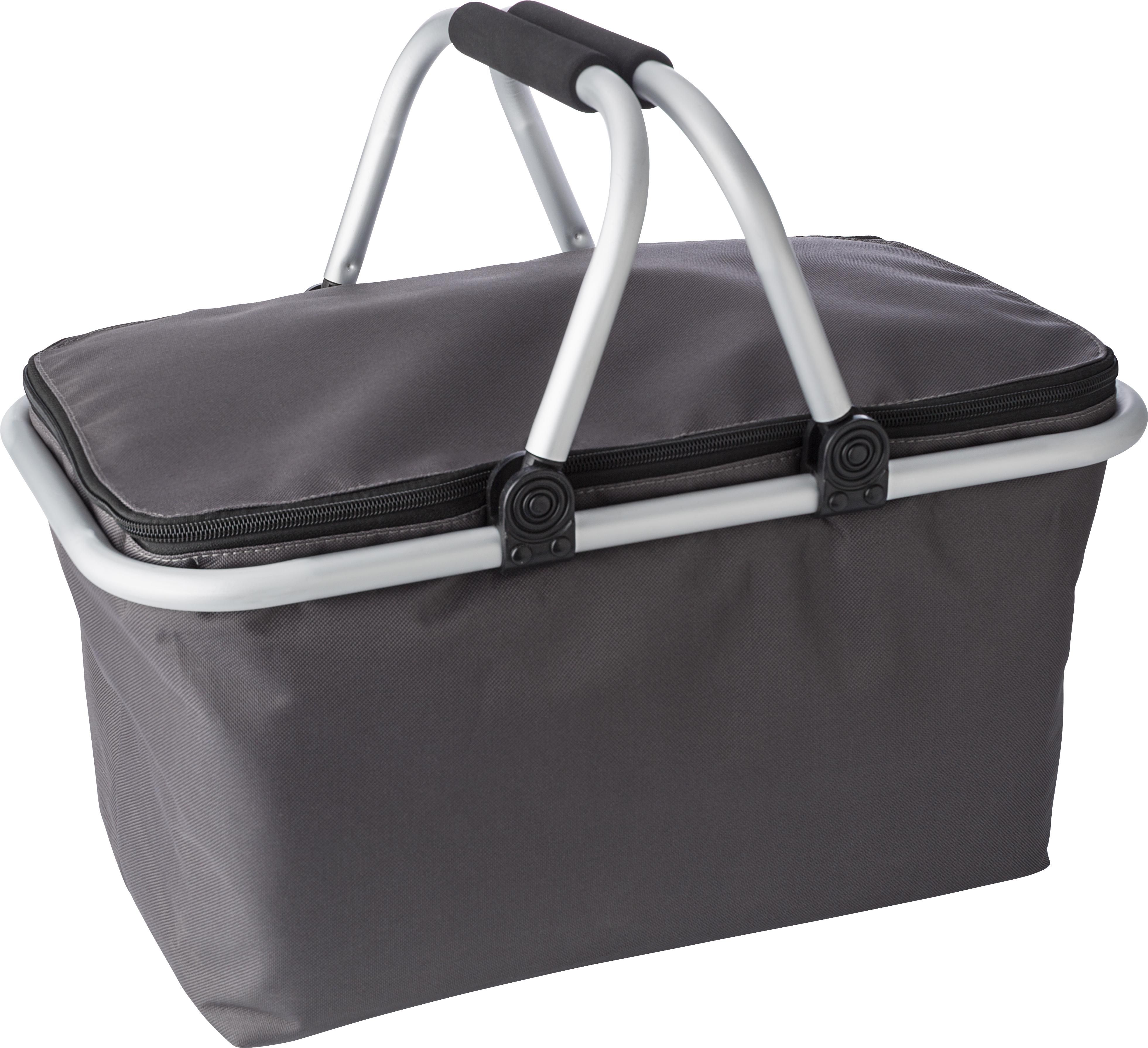 Cestino termico shopping pieghevole, linea Oxford, scomparto con chiusura lampo, impugnatura tonda in alluminio con presa in EVA, in poliestere 320 D