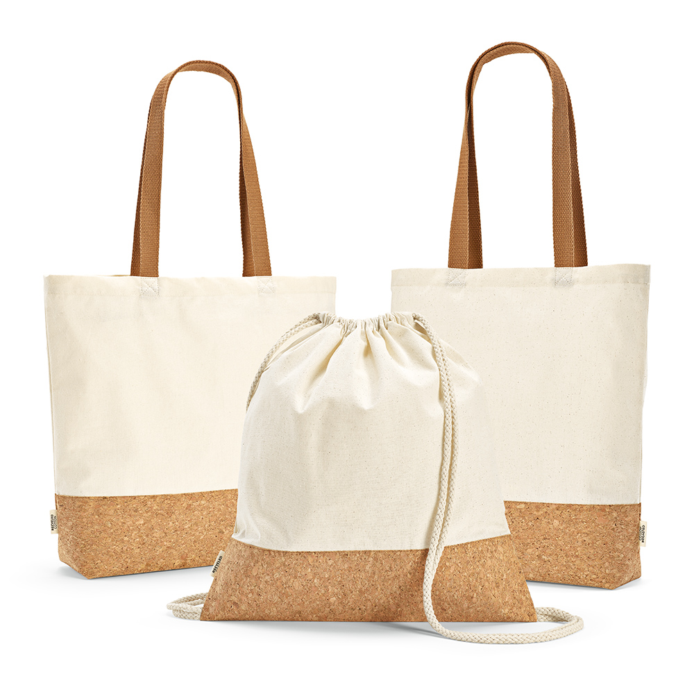 Shopper Chimborazo in 70% cotone riciclato e 30% rPET. Presenta un fondo in sughero resistente, peso 180 gsm e manici comodi da 65 cm. Capacità di 15 L e può trasportare fino a 12 kg. Fai una scelta sostenibile oggi. Misure 40x38x8 cm.