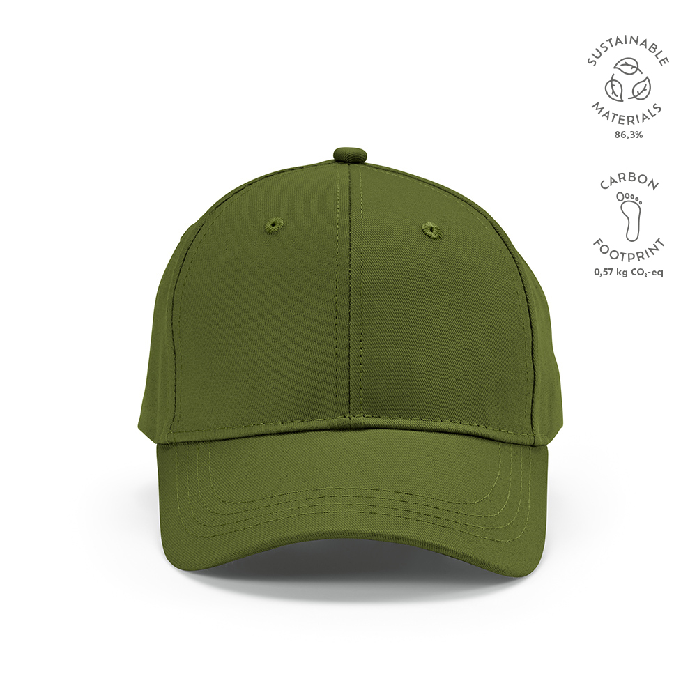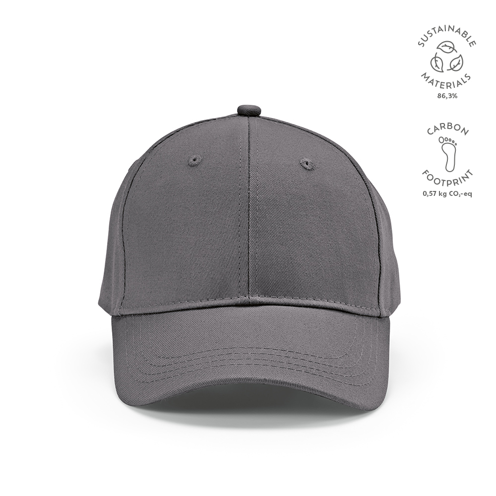 Cappellino Darrell 6 pannelli in cotone riciclato 280 gsm. La fibbia metallica regolabile sul retro garantisce una vestibilità confortevole per ogni avventura. Il tuo essenziale quotidiano per proteggerti dal sole. Disponibile in 17 colori e confezionato in polybag biodegradabile.