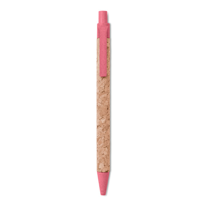 Push ballpoint pen with cork, ecological straw (50%) and ABS plastic (50%). Blue refill.