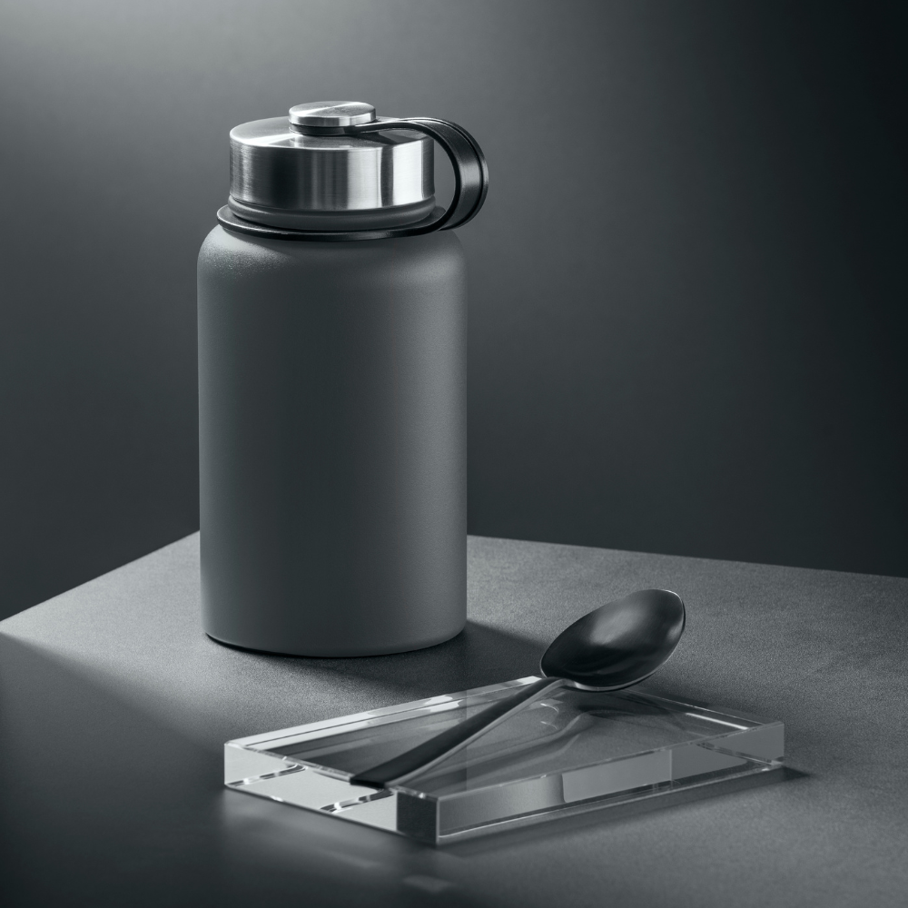 This vacuum food thermos will keep your meal at the right temperature for hours. Easy opening and for eating hot meals. Made of extremely durable 18/8 stainless steel, naturally BPA and phthalate free, resistant to mechanical damage. The food thermos does not affect the taste and smell of food. The double-walled vacuum insulation offers excellent insulating properties (cold temperature up to 12 hours and hot temperature up to 6 hours). The large opening makes it easy to fill and clean the thermos. The fully tight lid allows you to carry the thermos in a backpack or bag, without the risk of the contents spilling out. It will be perfect for trips to the mountains and after a day on the slopes, for work or school. Powder coated surface. Certified for food contact.