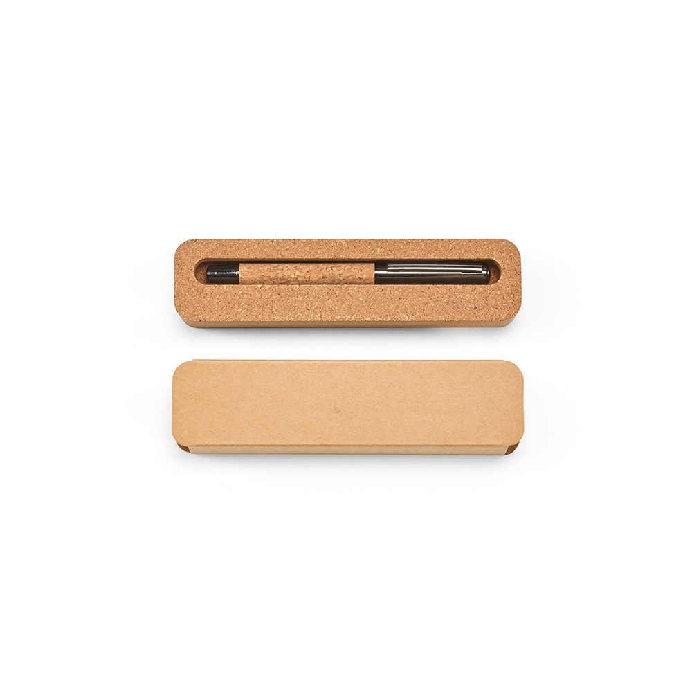 Penna a sfera Faulkner che combina sughero ecologico e acciaio inox riciclato, esprimendo sostenibilità. Con 2 km di inchiostro blu Dokumental® (punta 0,7 mm), garantisce una scrittura fluida. Presentata in un’elegante confezione singola in sughero premium con una custodia in kraft.