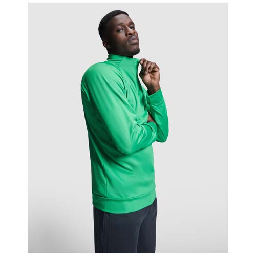 Tessuto tecnico. Maniche raglan. Pile interno. Colletto a mezza zip con cuciture coperte e rinforzate abbinate. Colletto, polsini e orlo posteriore a costine 1x1. Etichetta rimovibile. Felpa da abbinare ai pantaloni Neapolis.