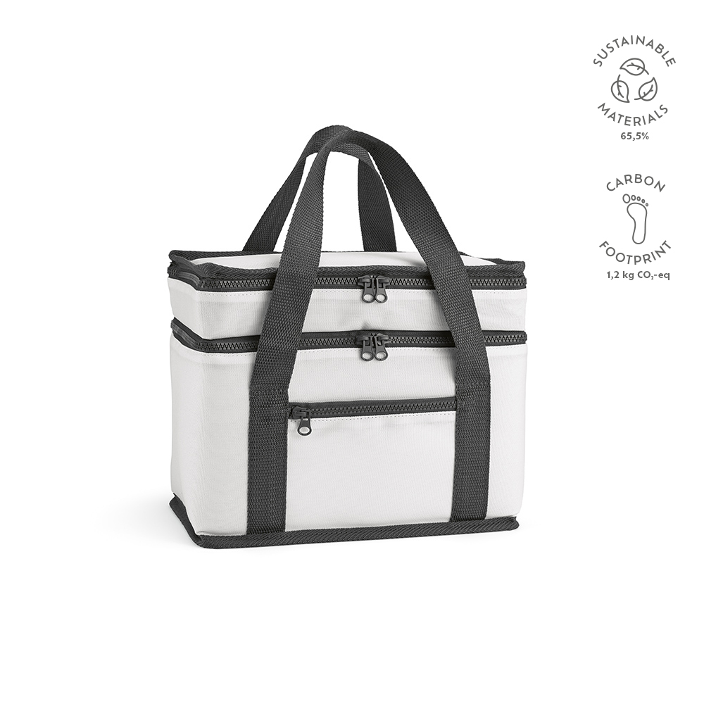 Borsa frigo Florence L da 10L, realizzata in 600D rPET, con due scomparti, tasca frontale e cerniere termo-iniettate avanzate per un raffreddamento ottimale. Eleva le tue esperienze all’aperto con stile e attenzione all’ambiente. Adatta per 8 lattine.