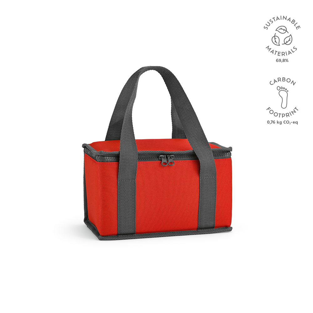 Borsa frigo Florence M eco-friendly da 5L, realizzata in 600D rPET, con 2 manici e cerniere termo-iniettate all'avanguardia che garantiscono il mantenimento della freschezza dei contenuti, rendendola il compagno perfetto. Adatta per 6 lattine.