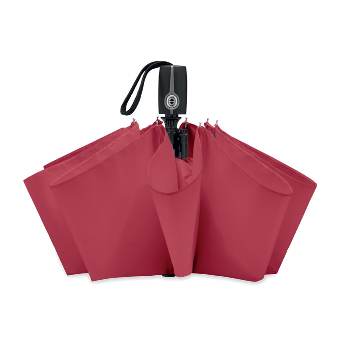 Ombrello deluxe automatico da 21'' in 190T. Struttura in acciaio placcata zinco. Nervature nere con due sezione in fibra di vetro e punte in metallo cromato. Manico nero con doming. 3 sezioni di chiusura. In sacchetto abbinato. Chiusura automatica.