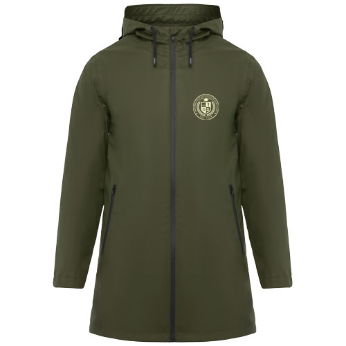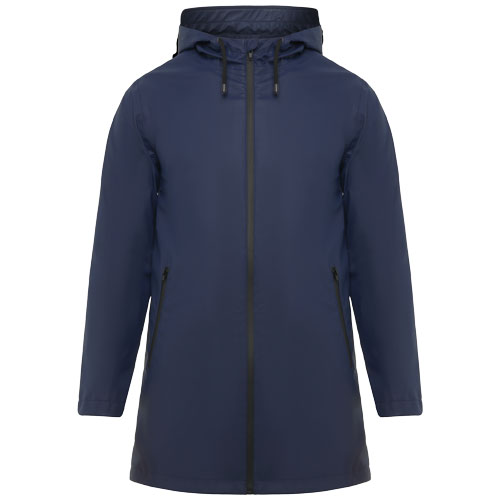 Giacca impermeabile. Cappuccio con visiera. Cerniere e cuciture termosaldate. Dettagli a contrasto di colore nero. Due tasche laterali con cerniera. Fessure sul retro del cappuccio. Etichetta rimovibile. Impermeabile. Il modello è alto 185 cm ed indossa una taglia M.