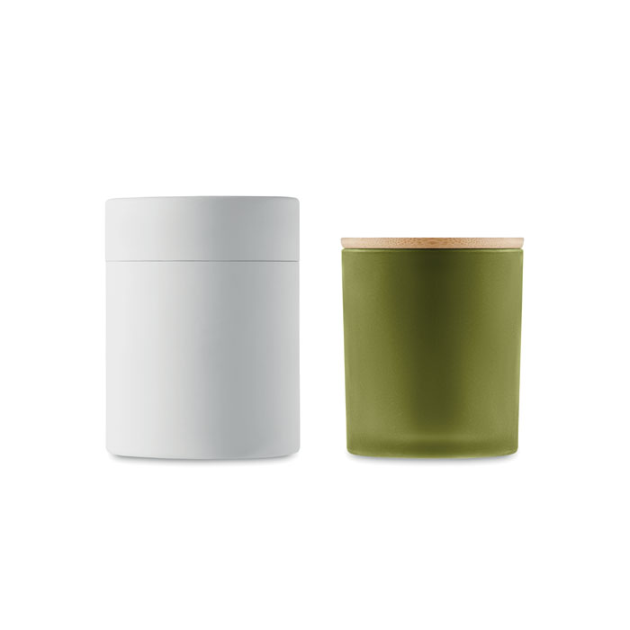 Candela di cera vegetale alla cannella, vaniglia, legno di sandalo o gelsomino in barattolo di vetro opaco con coperchio di bamboo. 120 gr. Durata candela: 20 ore. In scatola regalo in tubo di carta. Rilassatevi in casa e vivete una sensazione di benessere con queste candele di cera naturale. Questi profumi creeranno un ambiente rilassante e saranno un regalo molto apprezzato.