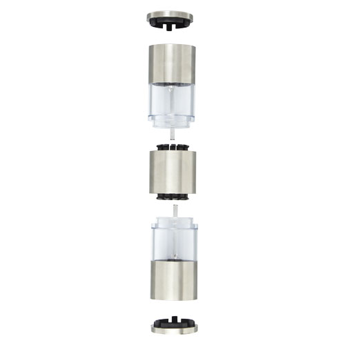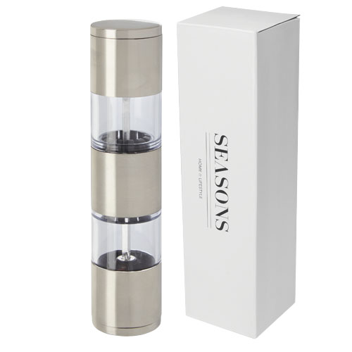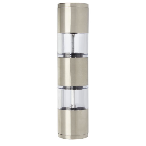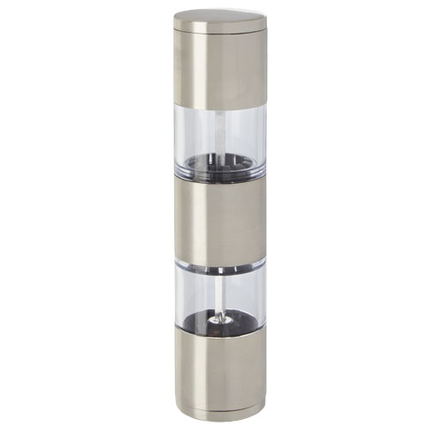 Macinino a doppia funzione con un'estremità per il sale e l'altra per il pepe. Pepe e sale non inclusi. Può contenere 50 g di sale e 36 g di pepe. Capacità: 80 ml.