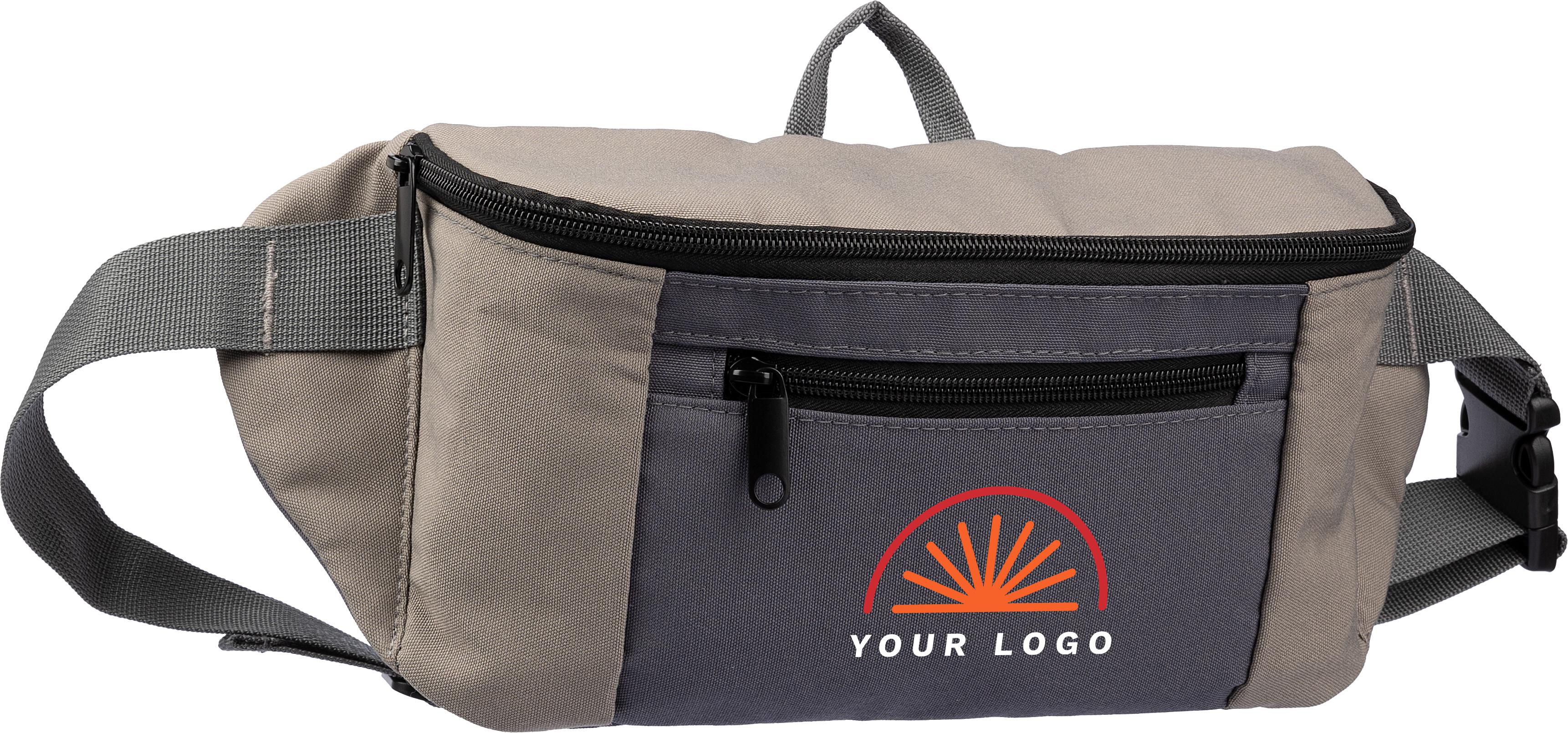 Marsupio in poliestere 600 D (imitazione cotone), fodera in PU 210 D, supporto in schiuma PE 3 mm, ampio scomparto sul lato superiore e tasca sul lato anteriore, entrambe con chiusura lampo, tracolla regolabile con fibbia