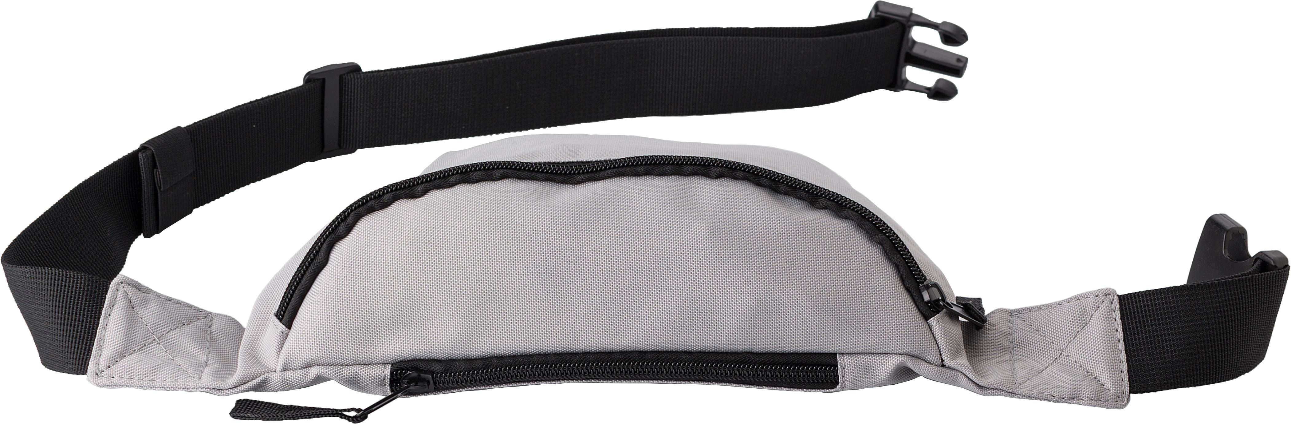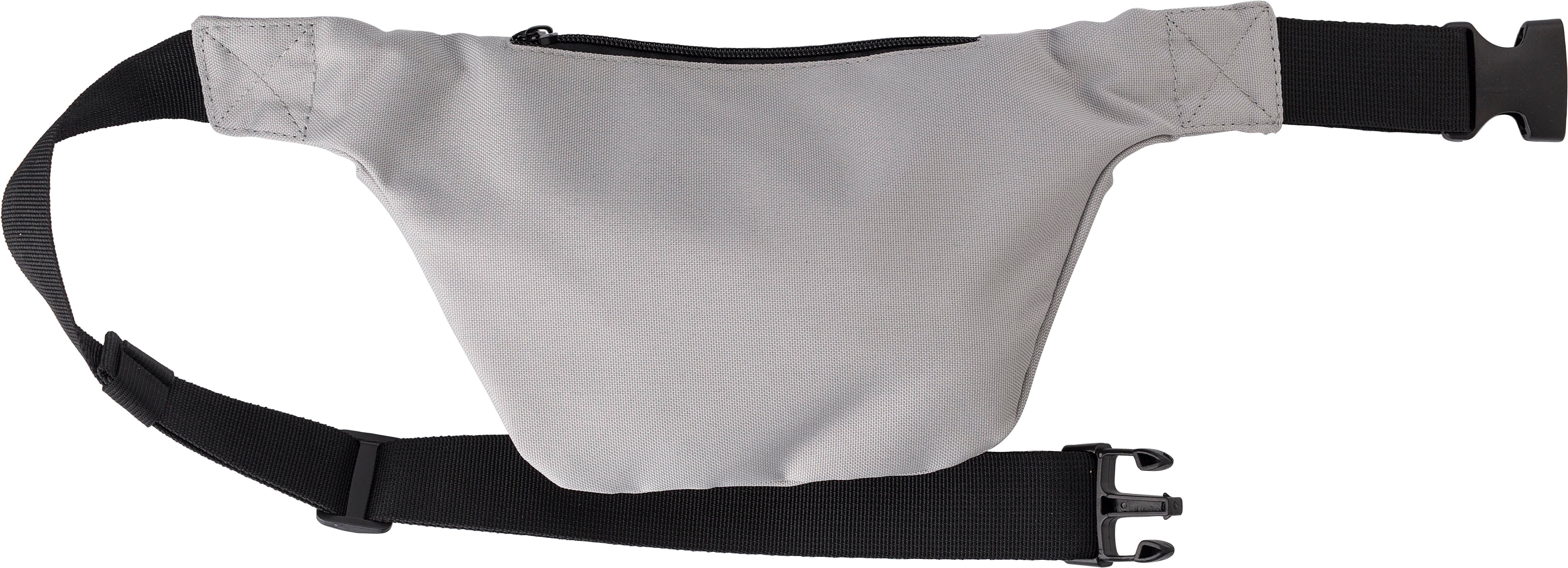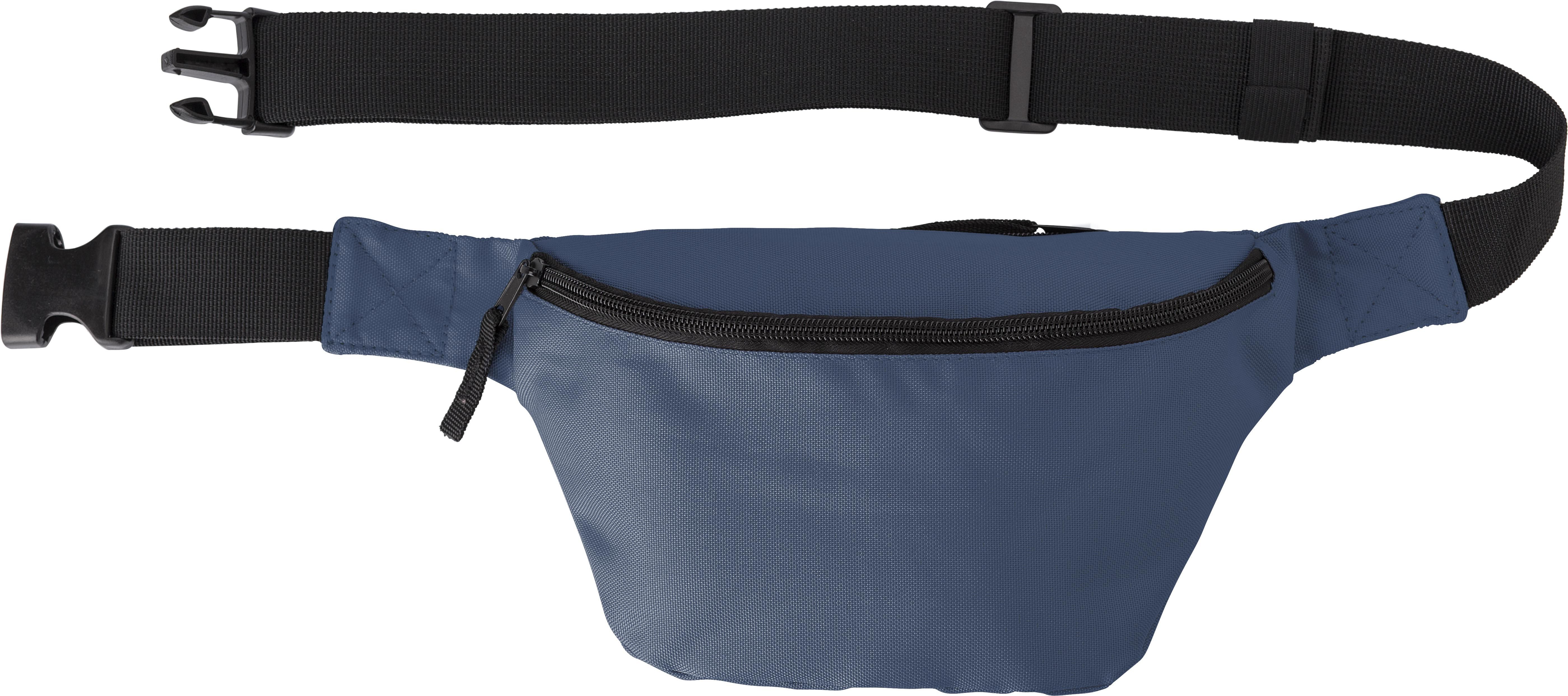Marsupio, tasca frontale e piccola tasca sul retro, entrambe con chisura lampo, fascia nera regolabile con chiusura a fibbia, in poliestere 600 D