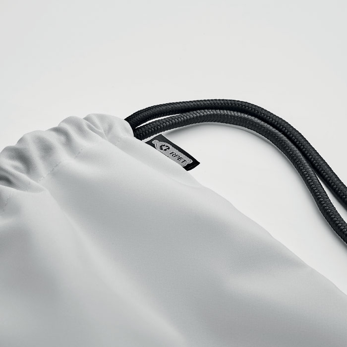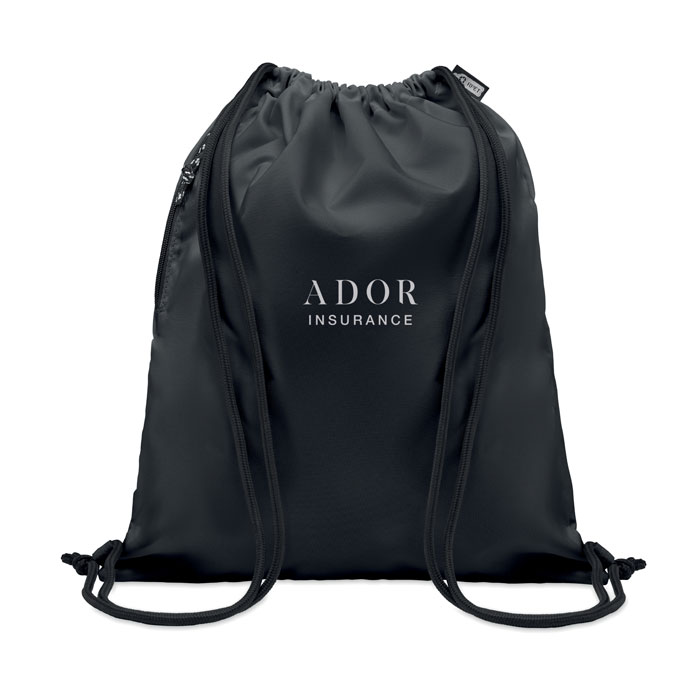 Sacca in poliestere 300D RPET con tasca esterna laterale con cerniera. Cordini spessi.