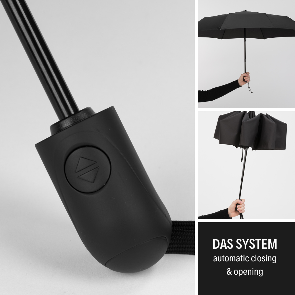 Un ombrello insolitamente robusto della collezione Cambridge con DAS (Double Automatic System - chiusura e apertura automatica) e il sistema antivento.