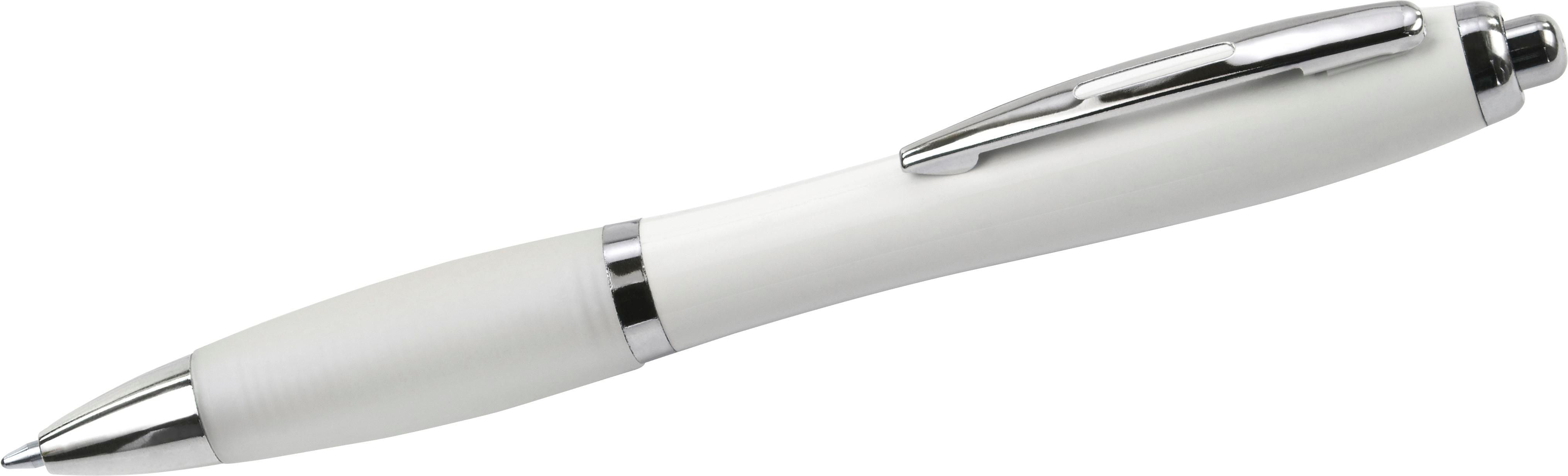 Penna a sfera in ABS riciclato, corpo colorato ed impugnatura in gomma, refill blu