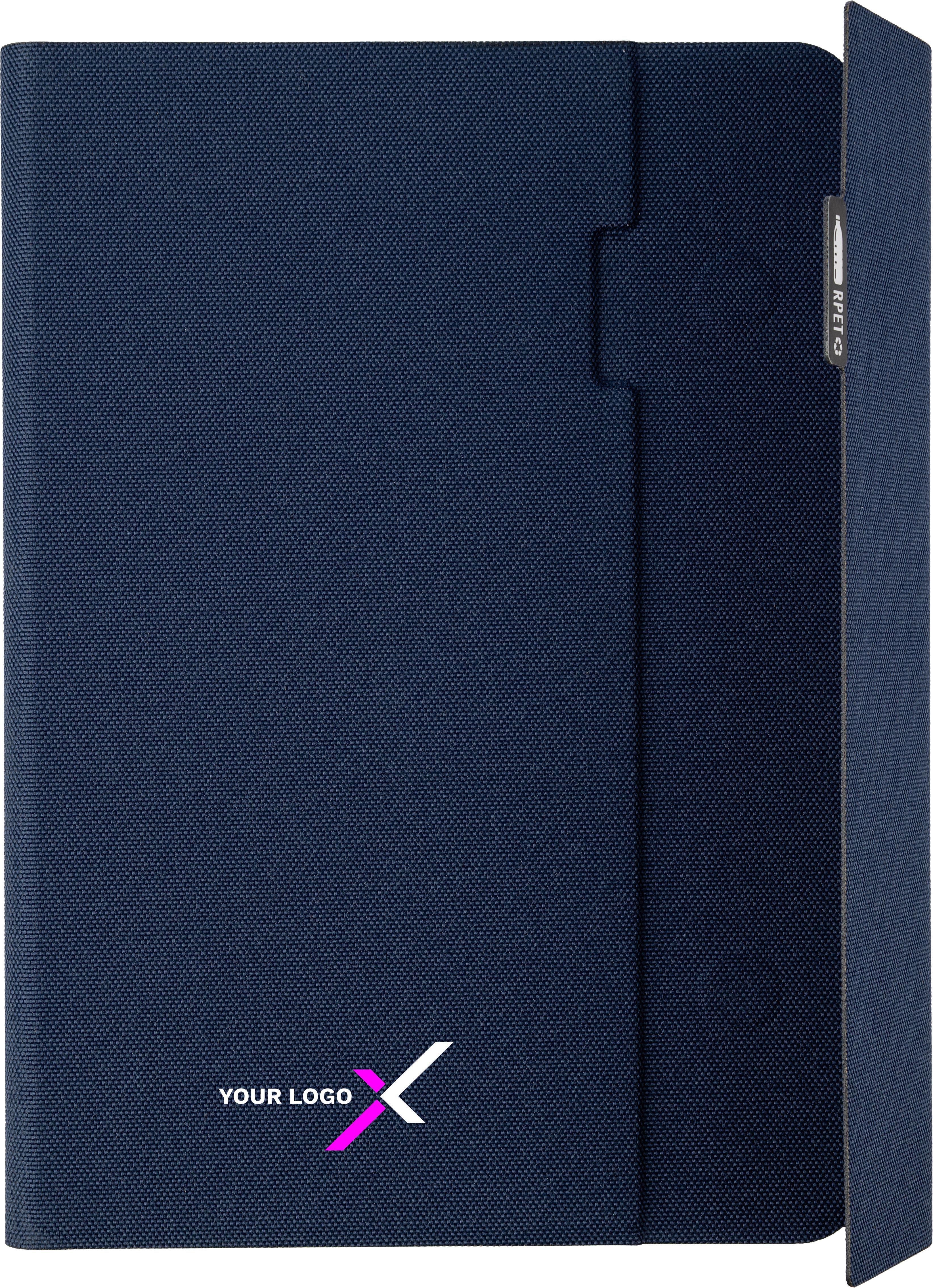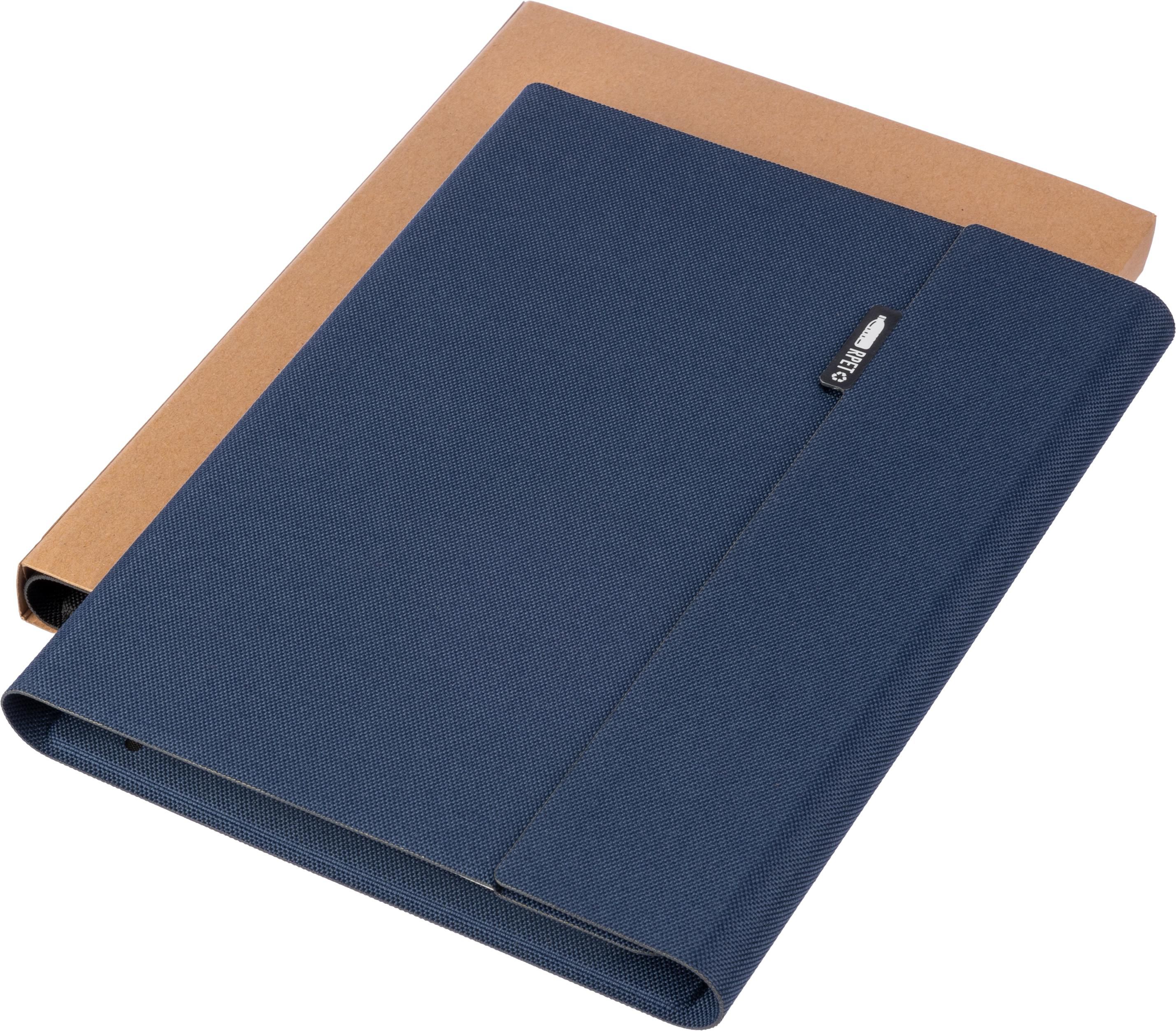 Portablocco in rPET formato +/- A5, finiture saldate, include notebook con 64 pagine a righe, carta 70 g/m², scomparti vari, supporto per il telefono, chiusura magnetica, custodia singola in carta kraft