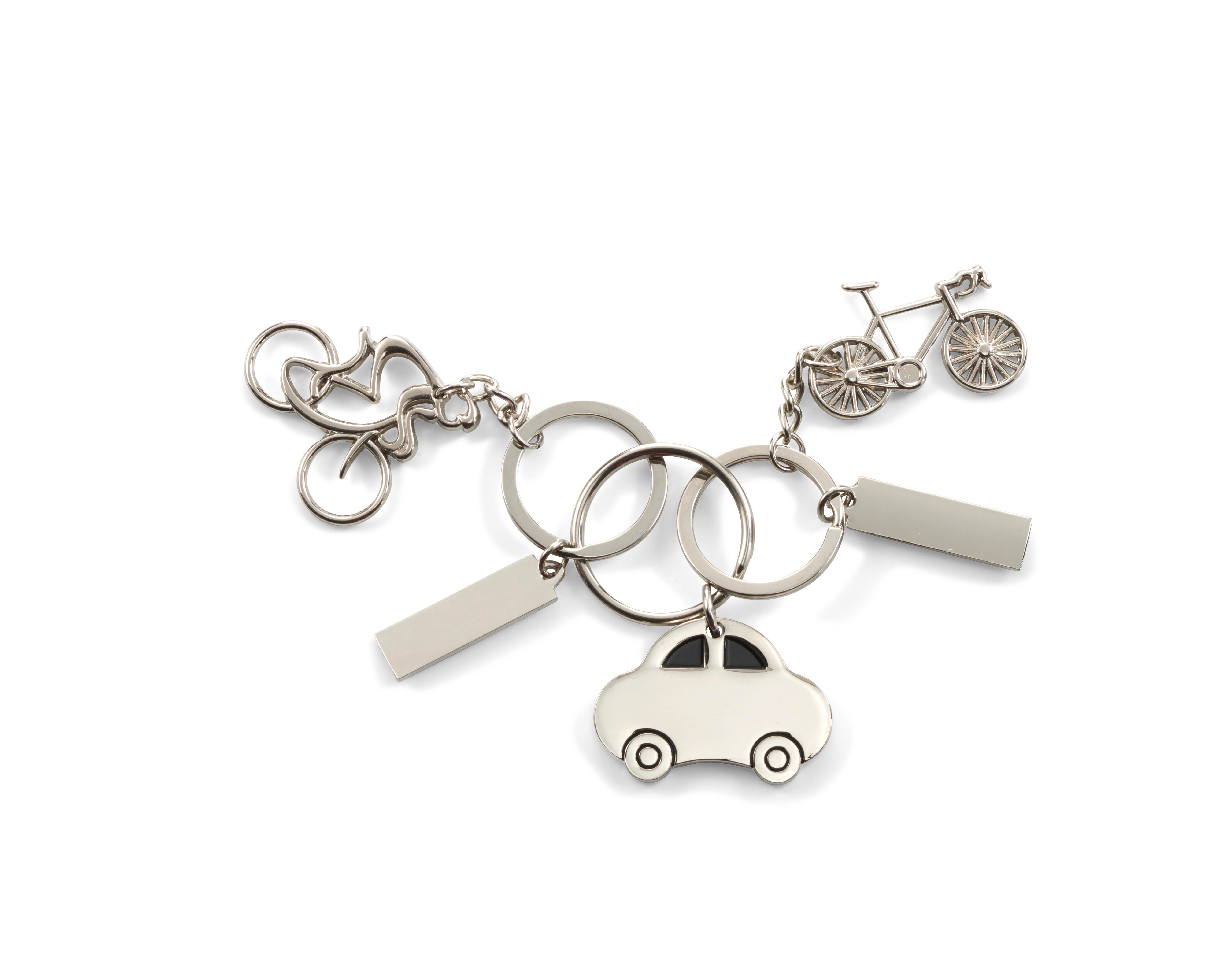 Portachiavi ciclista in metallo con una placca rettangolare per incisione, confezione regalo