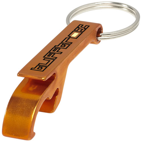 Essere in grado di aprire una bottiglia o una lattina in qualsiasi momento e ovunque, mentre si promuove un marchio in modo sofisticato: il portachiavi apribottiglie e lattine Tao è l'accessorio che fa per voi. Il portachiavi è realizzato in alluminio, materiale in grado di renderlo leggero ma resistente. Grazie alla sua finitura metallizzata, un logo stampato o inciso sul portachiavi risulterà ancor più d'impatto.