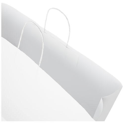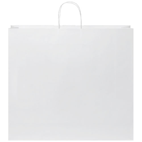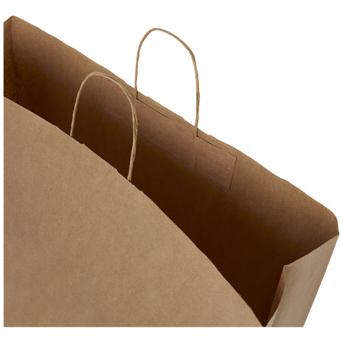 Sacchetto in carta kraft di dimensioni XXL (49,5 x 14 x 44 cm) con manici intrecciati. Realizzato in Europa con carta di provenienza responsabile (bianco da 100 g/m², marrone da 90 g/m²) è una soluzione per il confezionamento sostenibile e durevole con ampio spazio per una varietà di articoli. L'aspetto naturale e rustico della carta kraft aggiunge un tocco elegante adatto per qualsiasi occasione. Perfetto per lo shopping, i regali o gli eventi, questo sacchetto è un'alternativa ecologica alle borse di plastica. Scegli la praticità e la responsabilità ambientale con i nostri sacchetti di carta kraft. Dimensione: 49,5 x 14 x 44 cm.