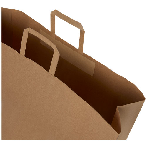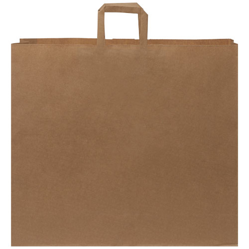 Sacchetto in carta kraft di dimensioni XXL (49,5 x 14 x 44 cm) con manici piatti. Realizzato in Europa con carta di provenienza responsabile (bianco da 100 g/m², marrone da 90 g/m²) è una soluzione per il confezionamento sostenibile e durevole con ampio spazio per una varietà di articoli. L'aspetto naturale e rustico della carta kraft aggiunge un tocco elegante adatto per qualsiasi occasione. Perfetto per lo shopping, i regali o gli eventi, questo sacchetto è un'alternativa ecologica alle borse di plastica. Scegli la praticità e la responsabilità ambientale con i nostri sacchetti di carta kraft. Dimensione: 49,5 x 14 x 44 cm.
