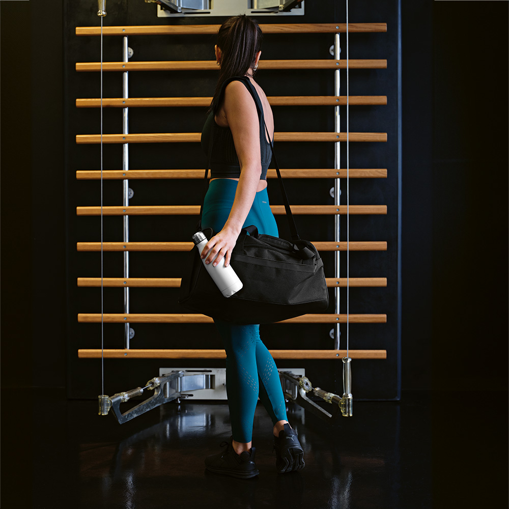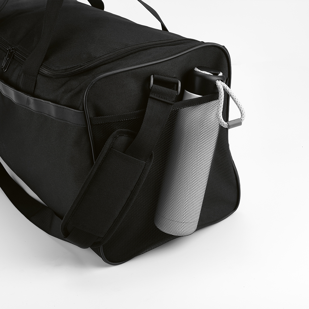 La borsa da ginnastica Sao Paulo L da 50L in rPET è spaziosa e funzionale. Presenta un ampio scomparto principale e una tasca frontale nascosta con cerniera per una conservazione sicura. Include una tasca laterale aperta e una tasca a rete sull'altro lato per un facile accesso agli oggetti essenziali. Una cinghia riflettente di colore contrastante aggiunge stile e visibilità, nascondendo al contempo la tasca frontale. Completata con manici in tessuto imbottito e una tracolla regolabile con imbottitura per un trasporto confortevole.