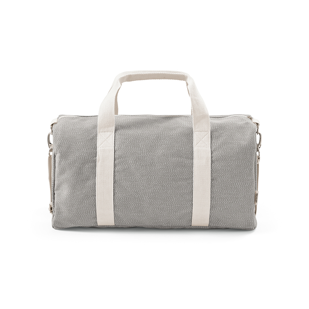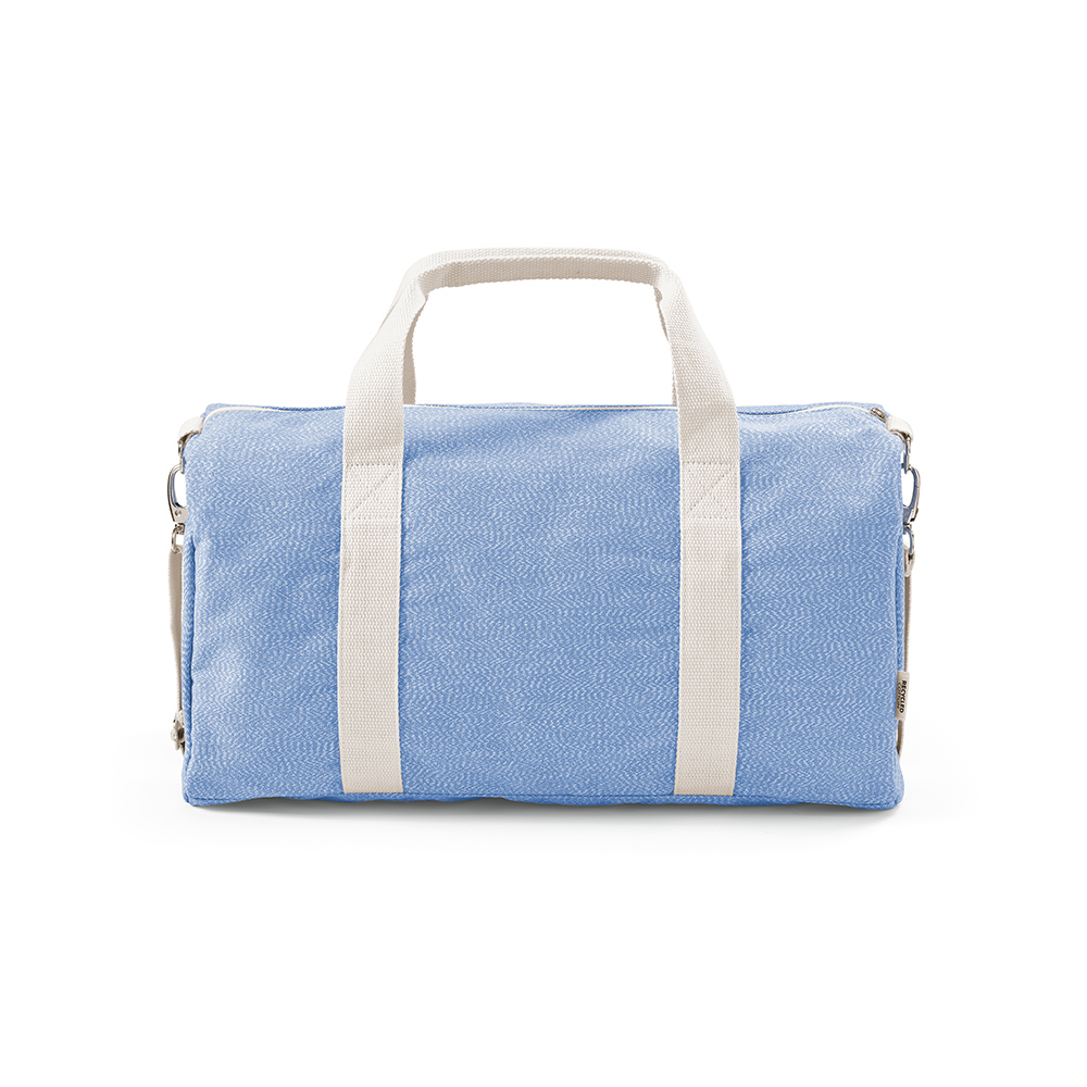 La borsa da ginnastica Seoul da 30L è realizzata in una miscela di cotone riciclato (75%) e rPET (25%), con moschettoni per la tracolla e uno strato interno in rPET. Confezionata in un sacchetto individuale in PE riciclato.