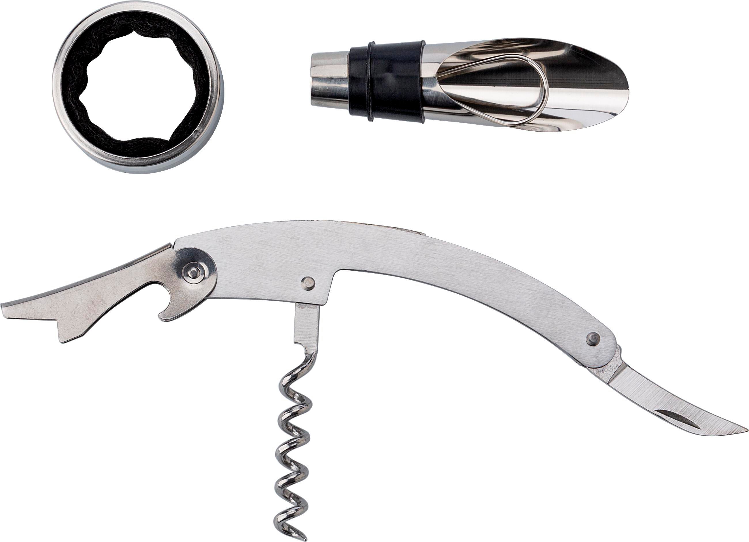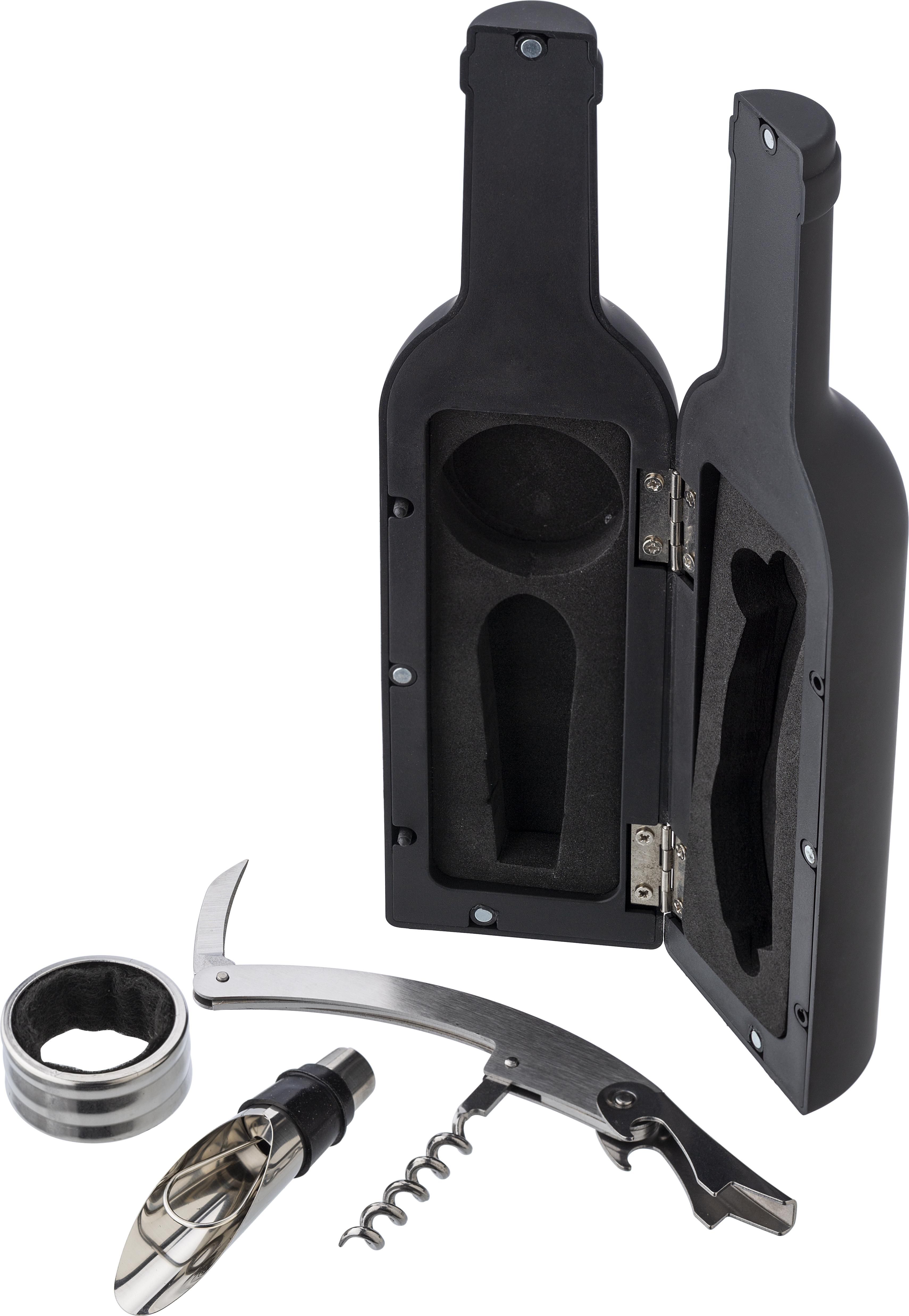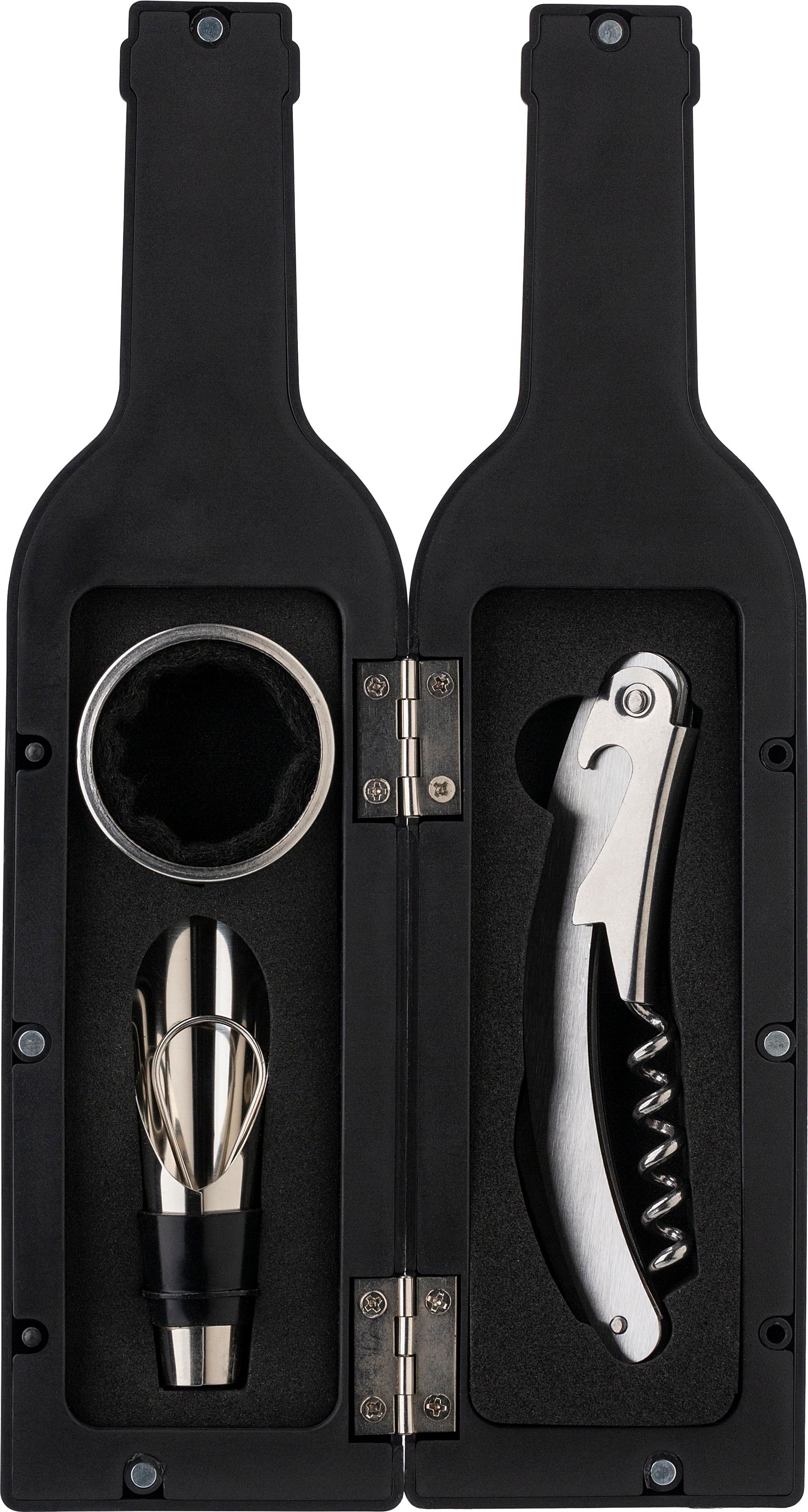 Set vino, 3 accessori in ABS a forma di bottiglia di vino, include cavatappi da cameriere, tappo per bottiglia con beccuccio versatore e raccogligocce
