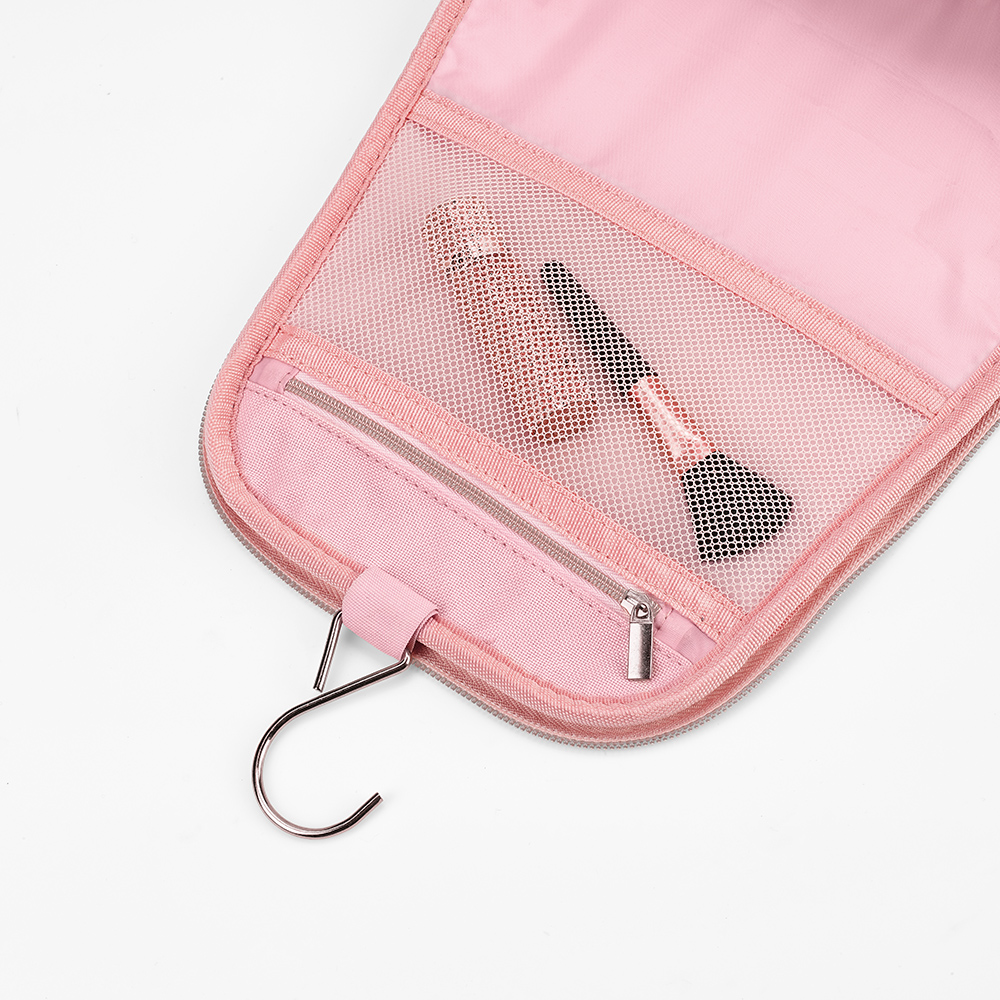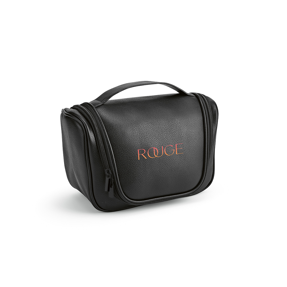 Il beauty case appendibile Shanghai è realizzato in PU riciclato (5L) con manico. Presenta un ampio scomparto principale, tasche più piccole per bottiglie e una tasca in rete sulla patta interna per riporre altri articoli essenziali. Sicuro con eleganti cerniere, è dotato di un gancio in metallo per appenderlo alla porta. Fornito in un sacchetto biodegradabile individuale.