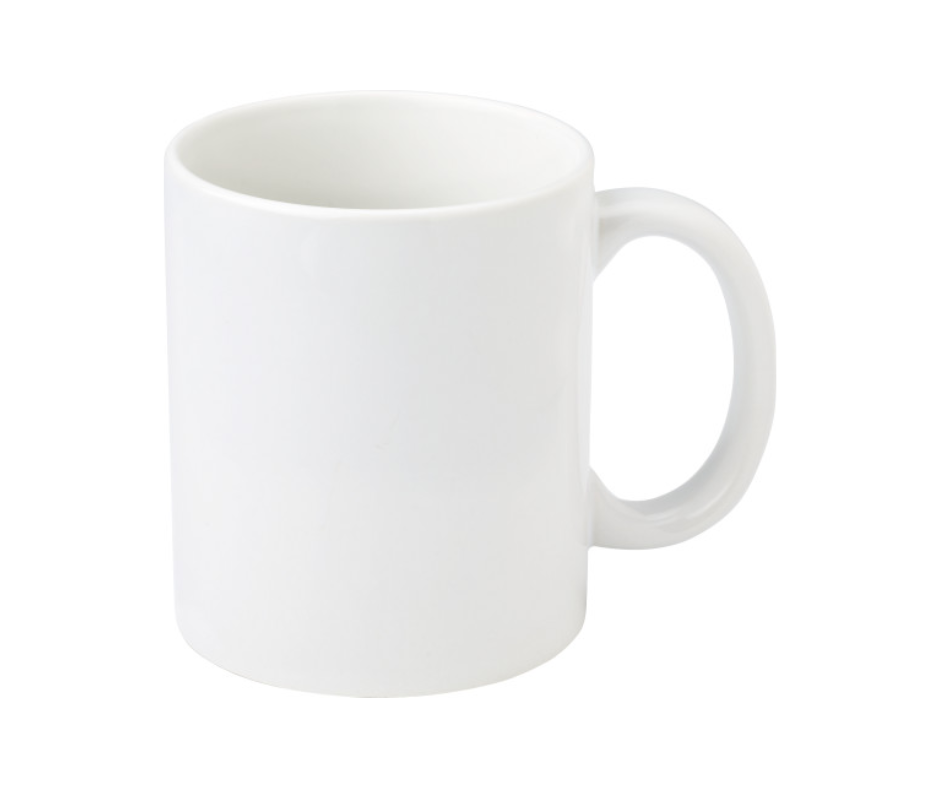 Tazza per stampa sublimatica, adatta al lavaggio in lavastoviglie, capacità 325 ml, vendita per multipli d'imballo da 36 pezzi, prezzo cadauno.