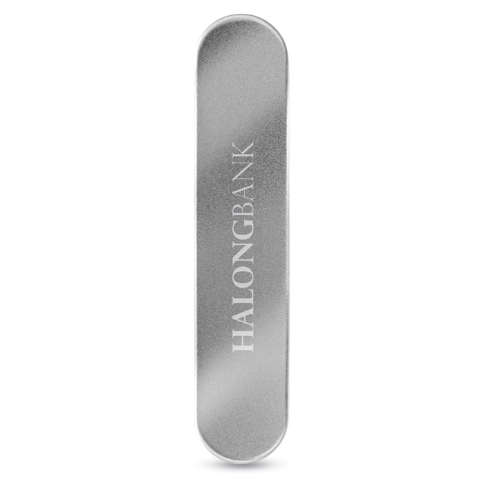 Puntatore laser in metallo con punta touch. Led bianco, puntatore rosso. 3 batterie bottone incluse. Confezionato in scatola di latta.