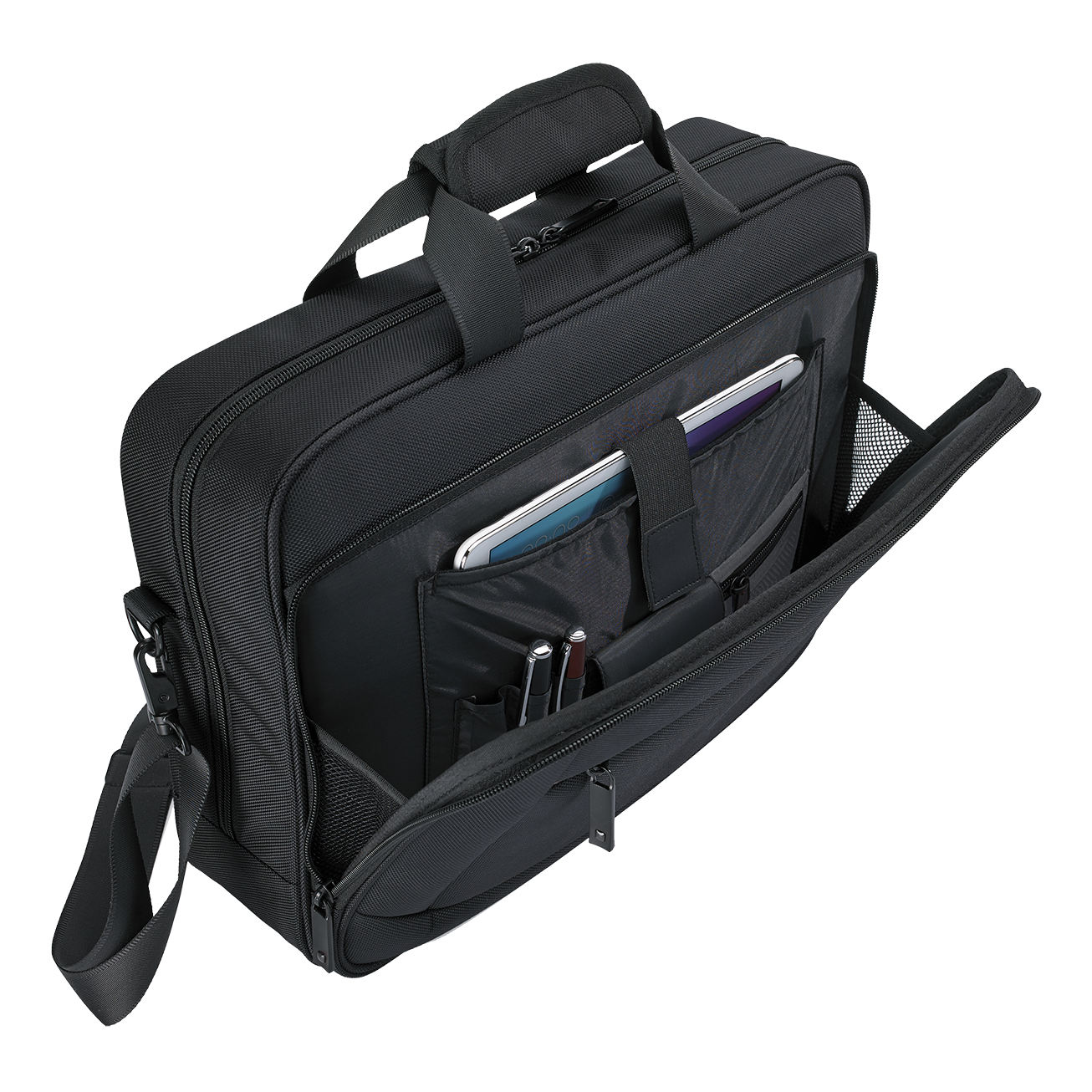 La borsa per laptop Voyager ha uno scomparto con una custodia imbottita per laptop e spazio aggiuntivo per i documenti A4. La borsa ha una tasca frontale esterna per gli accessori. Ha manici morbidi, ganci girevoli in metallo e una cinghia imbottita.Capacità: 13,5 l