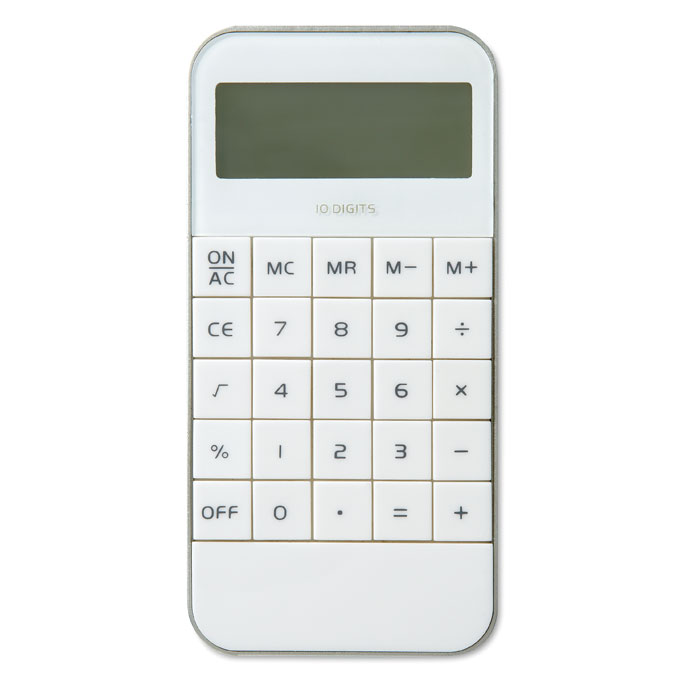Calcolatrice a 10 cifre in ABS, a forma iPhone®5. 1 batteria AG13 inclusa.