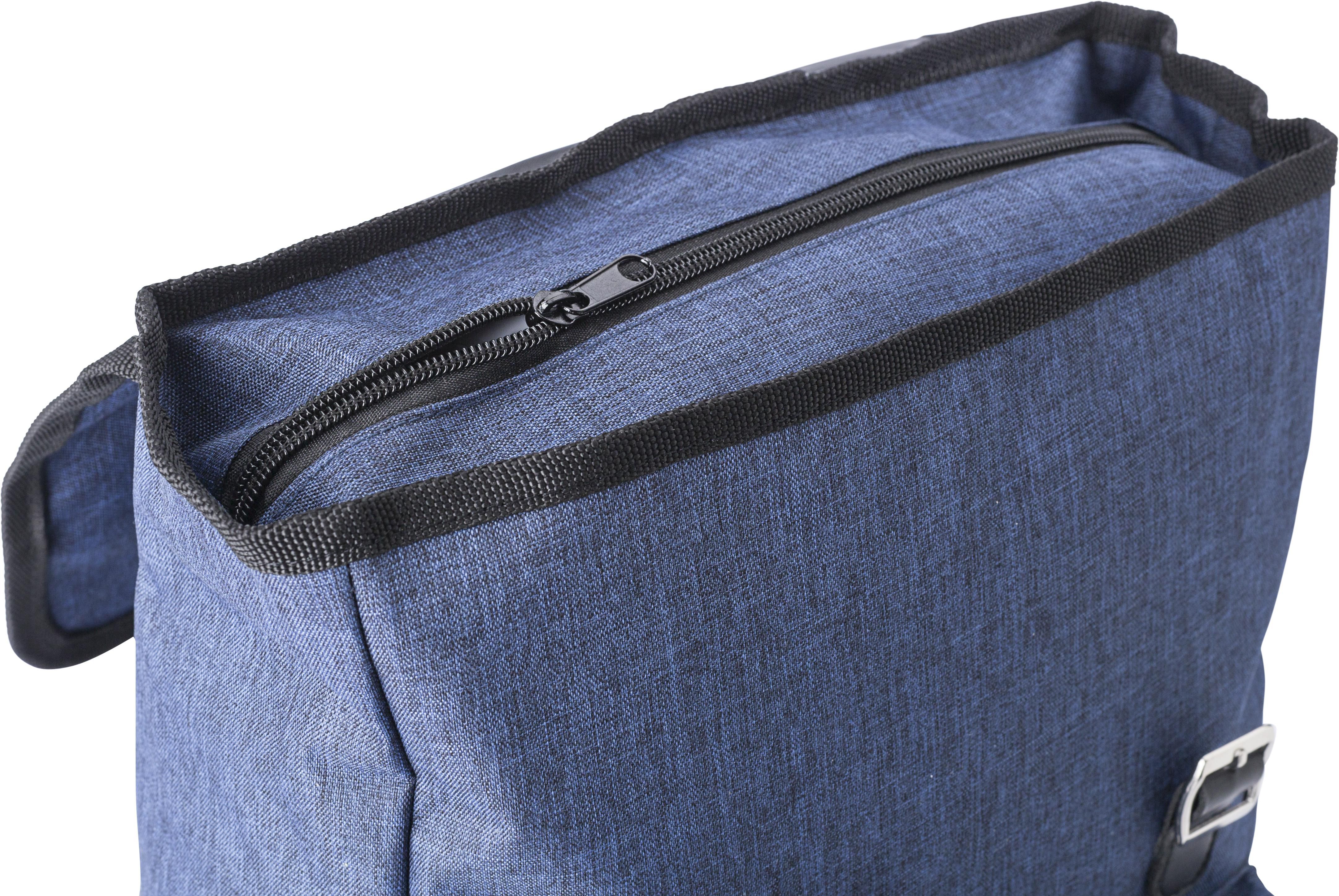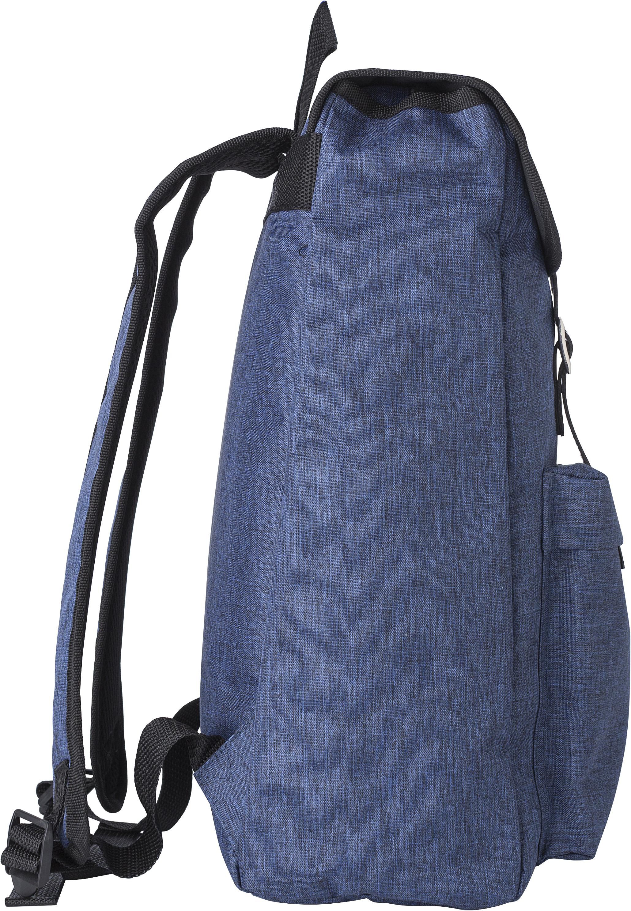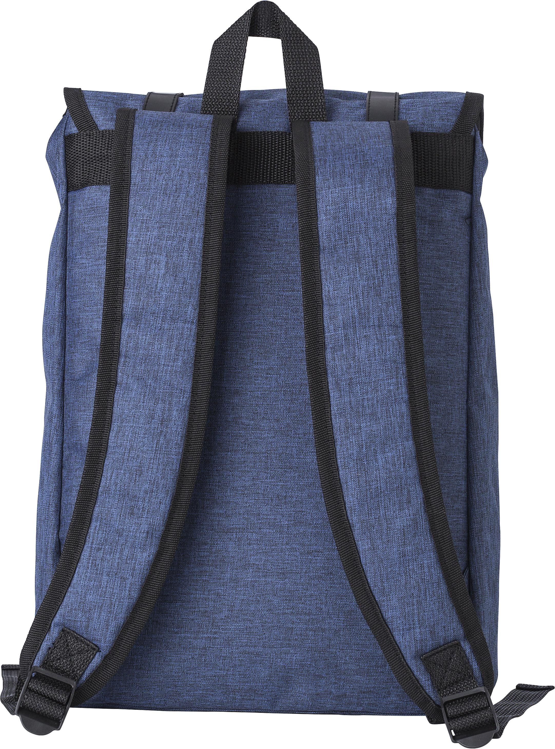 Zaino, ampio scomparto principale, tasca frontale, la patta si chiude con due fibbie metalliche, schienale imbottito, spallacci sono imbottiti e regolabili, in poliestere 210 D