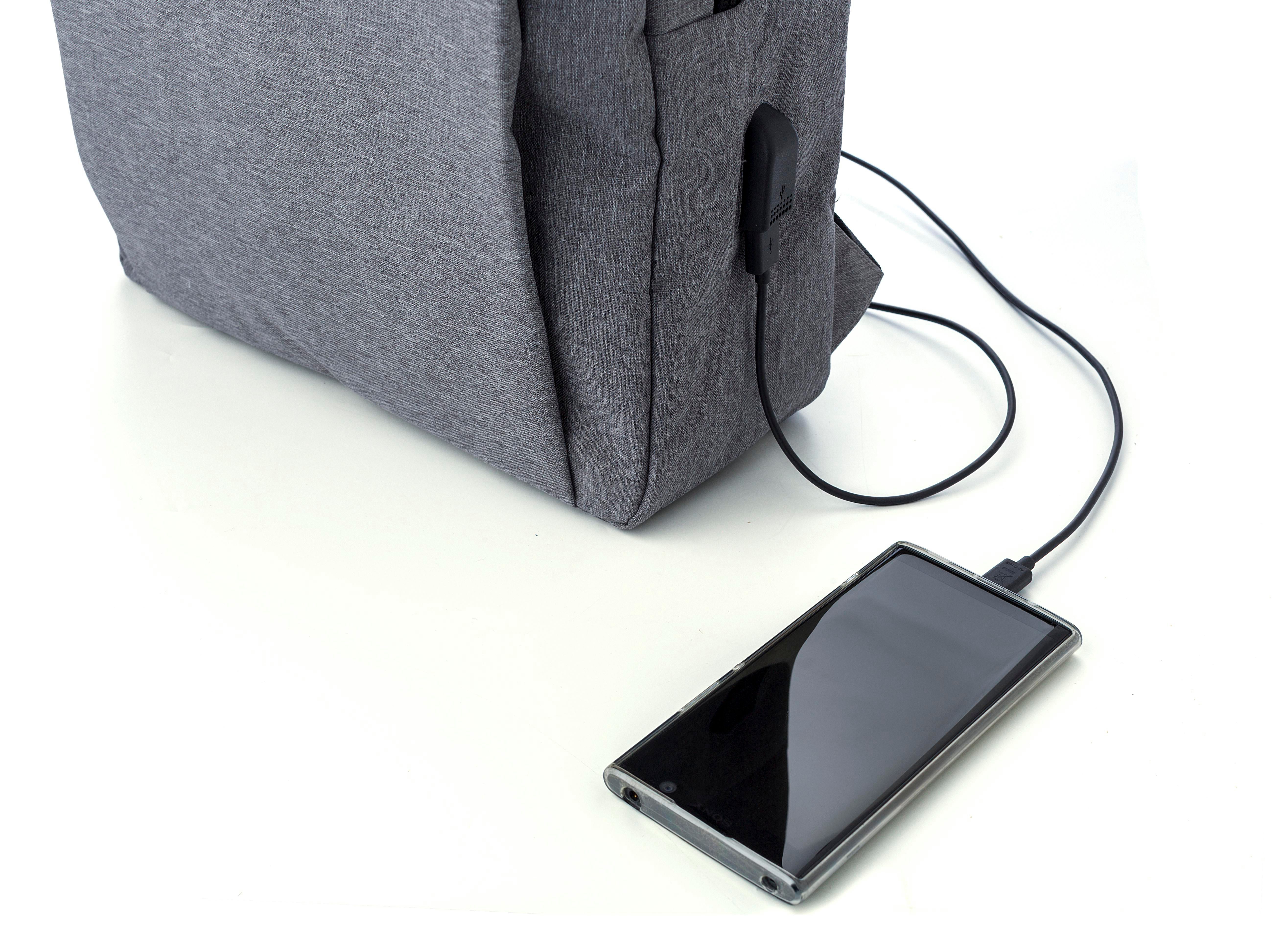 Zaino, adatto per computer portatile da 15 pollici, scomparto principale, tasca frontale, chiusura lampo, con uscita USB laterale, spallacci imbottiti regolabili, in poliestere 600 D